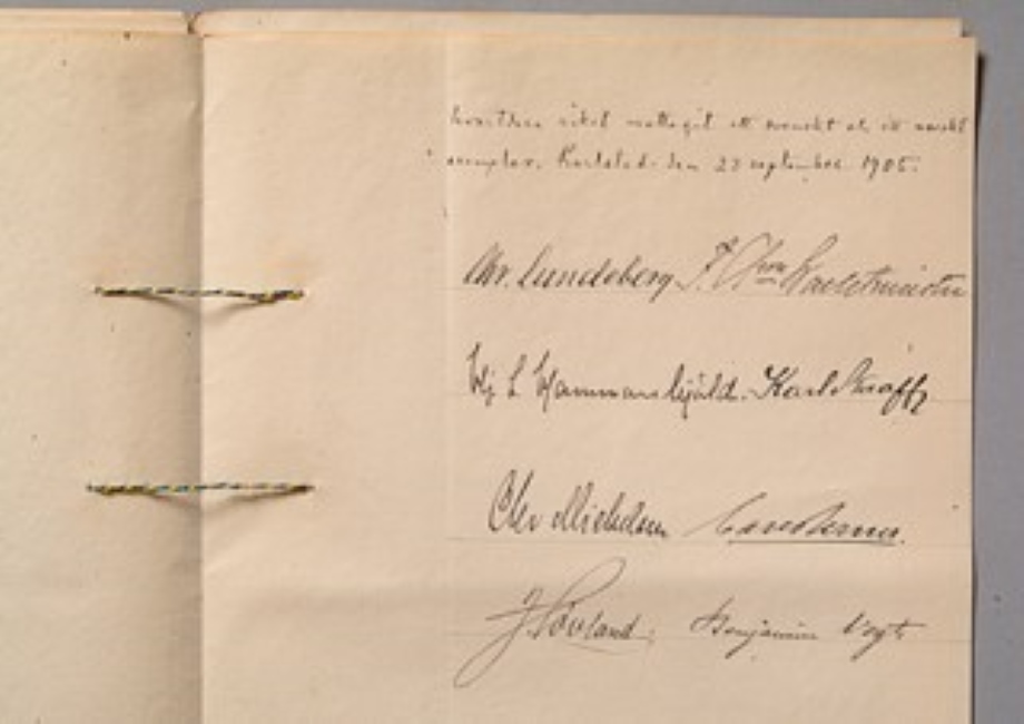 Signaturene på Karlstadforliket. Foto: Utenriksdepartementets arkiv, Arkivverket.