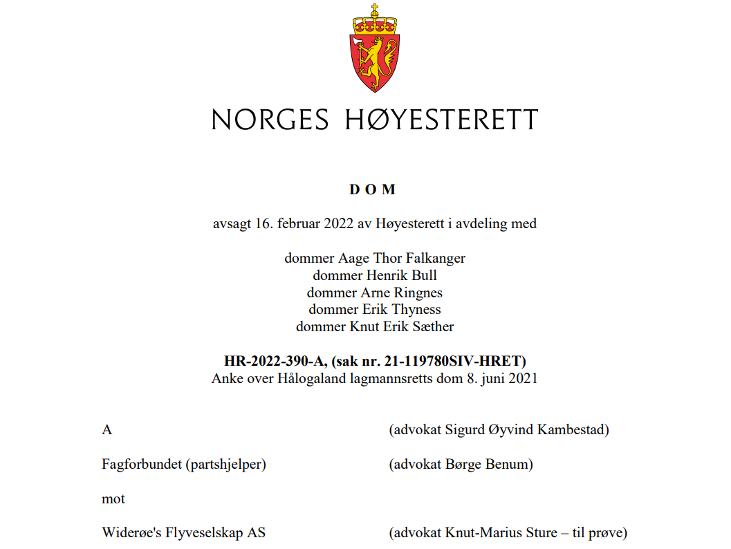 Kommentar til Widerøe-dommen HR-2022-390-A