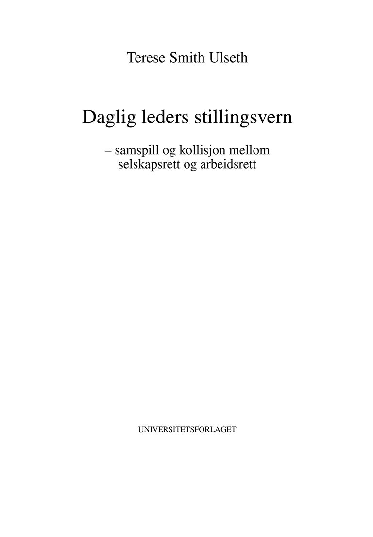 Daglig leders stillingsvern – samspill og kollisjon mellom Terese Smith Ulseth Rettsområde: Selskapsrett, Arbeidsrett Utgave: 2006 Fagbok