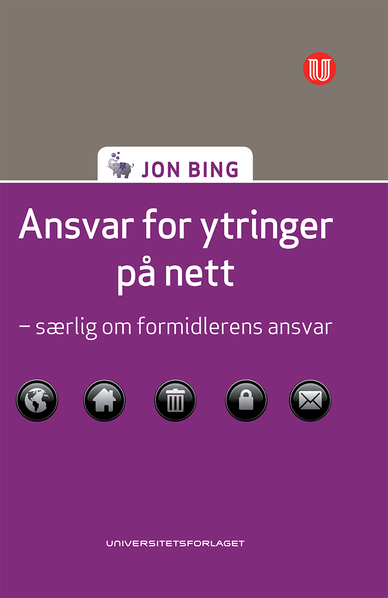 TittelAnsvar for ytringer på nettUtgivelsesår2008SpråkNorsk bokmålForfatterJon BingRettsområdeStrafferett, Strafferett og straffeprosess, Medierett, KonkurranserettUtgiverUniversitetsforlagetISBN9788215012797