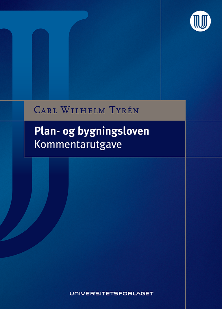TittelPlan- og bygningslovenUtgivelsesår2010SpråkNorsk bokmålForfatterCarl Wilhelm TyrénRettsområdePlan- og bygningsrett, ForvaltningsrettUtgiverUniversitetsforlagetISBN9788215017471